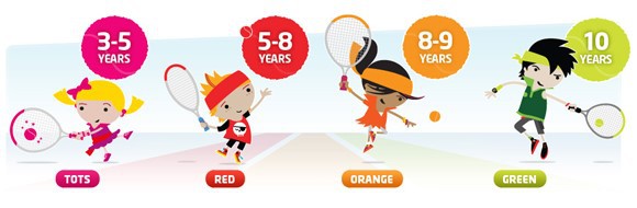 There are four stages of Mini Tennis; Tots, Red, Orange and Green, each with their own court size and type of ball. This tailored approach enables players to develop vital skills and techniques at an early age
